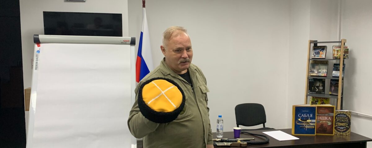В этот раз разговор касался холодного казачьего оружия. И он был удивительно интересным! Особенности строения кинжалов и шашек, имена лучших оружейников, дуэли и баталии — обо всём этом Андрей Олегович рассказывал настолько живо, увлекательно, что слушатели искренне удивились, когда лектор закончил выступать и указал на время: "Не может быть, чтобы целый час прошёл!"